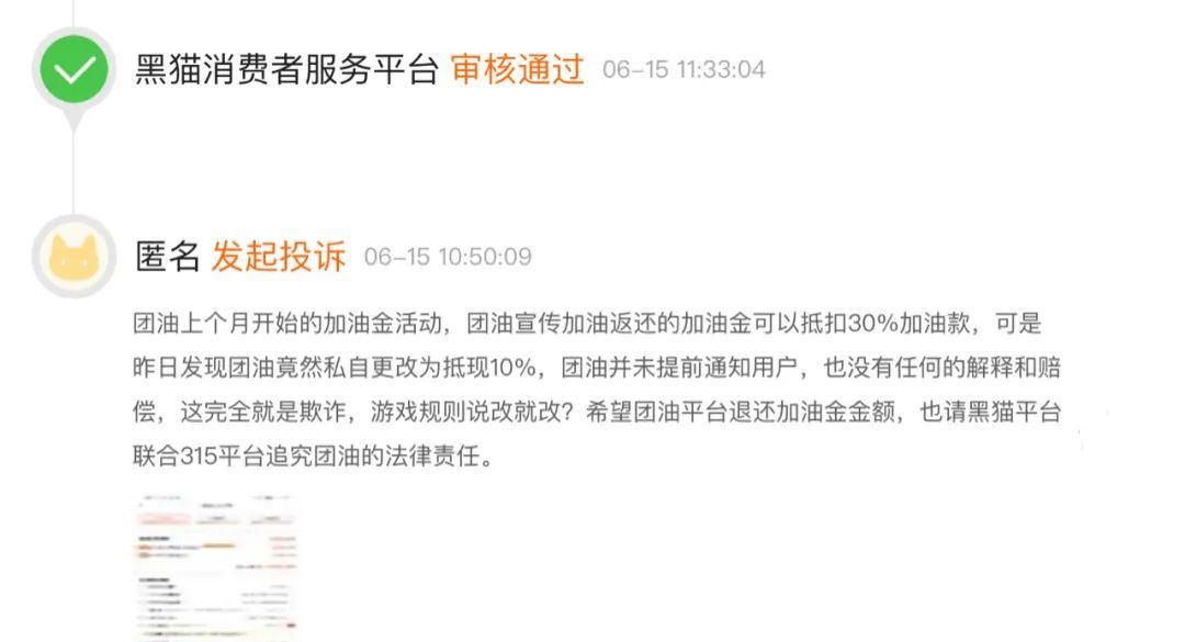 在最開始團油的宣傳中,明明加油金可以抵扣加油金額的30%,可是現(xiàn)在團油悄悄修改了規(guī)則。