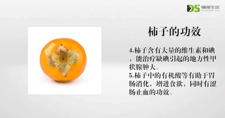 4.柿子含有大量的維生素和碘,能治療缺碘引起的地方性甲狀腺腫大。
