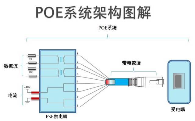 POE(Power Over Ethernet)是有源以太網(wǎng)供電的簡稱,指的是在現(xiàn)有的以太網(wǎng)Cat.5布線基礎架構不作任何改動的情況下,在為一些基于IP的終端(如IP電話機、無線局域網(wǎng)接入點AP、網(wǎng)絡攝像機等)傳輸數(shù)據(jù)信號的同時,還能為此類設備提供直流供電的技術。POE技術能在確保現(xiàn)有結構化布線安全的同時保證現(xiàn)有網(wǎng)絡的正常運作,最大限度地降低成本。