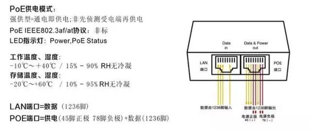 - 2)、網(wǎng)絡攝像機不支持IEEE802.3afIEEE802.3at 協(xié)議,不能直接使用POE設備供電。這時需要用到另外一種配套設備——PoE分離線或者PoE分離器。它的作用可以將集成有電力的網(wǎng)線分離成純數(shù)據(jù)網(wǎng)線和電源線。這樣就可完成數(shù)據(jù)與電源分離,達到一根網(wǎng)線即傳輸了數(shù)據(jù)又提供電源。