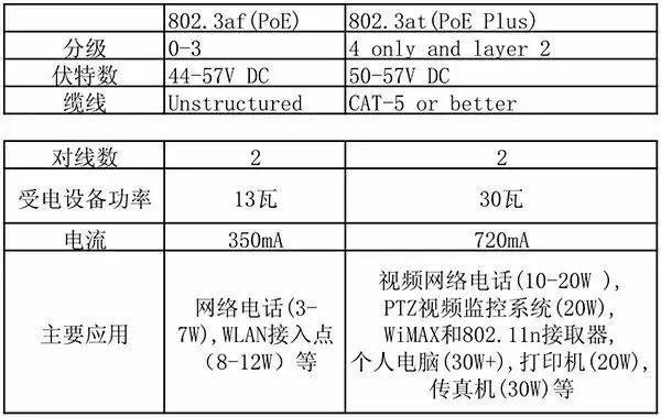 3 )、IEEE802.3af與IEEE802.3at的對比: