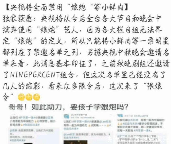央視中秋晚會禁用“娘炮”藝人,九位小鮮肉已除名?網友點贊!