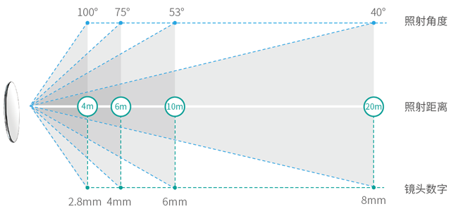 在實際監(jiān)控場景中,2.8mm焦距適用于電梯、樓梯等較為狹小的環(huán)境,4mm適用于會議室、商店稍大一些的場景等,而停車場、工廠車間、庭院等更開闊的地方則可以選用6mm以上的鏡頭;具體選擇可以根據(jù)需要而定。