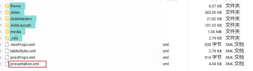 ②打開并解壓到一個文件夾,用記事本打開presentation.xml文件