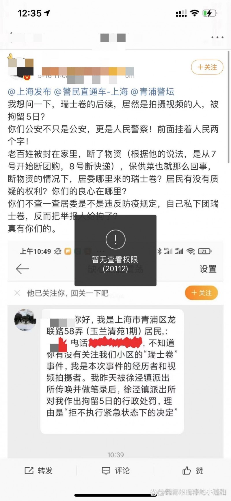 二.封控期4月中,26號的一名叔叔,突發心梗,小區距離西華山醫院2公里,因跨區醫療需鎮里特批,只能等待遠在15.8公里外的青浦中山醫院接人,一個小時多后救護車趕到,老人已經死亡。