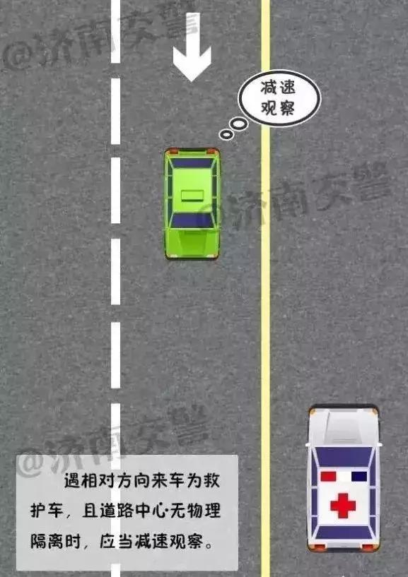 1、遇相對方向來車為急救車,且道路中心無物理隔離時(shí),應(yīng)當(dāng)減速觀察。如急救車要左轉(zhuǎn)彎或借自己所在車道通行,應(yīng)停車讓急救車先行。