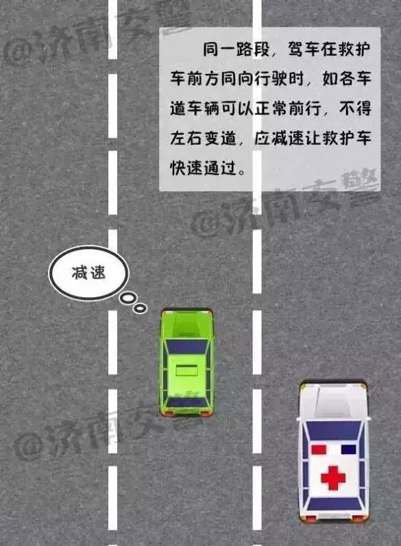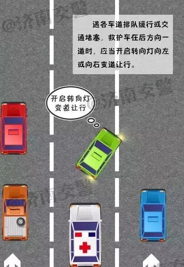 2、同一路段,駕車在急救車前方同向行駛時(shí),如各車道車輛可以正常前行,不得左右變道,應(yīng)減速讓急救車快速通過;如遇各車道排隊(duì)緩行或交通擁堵,急救車在后方同一車道時(shí),應(yīng)當(dāng)開啟轉(zhuǎn)向燈向左或向右變道讓行。