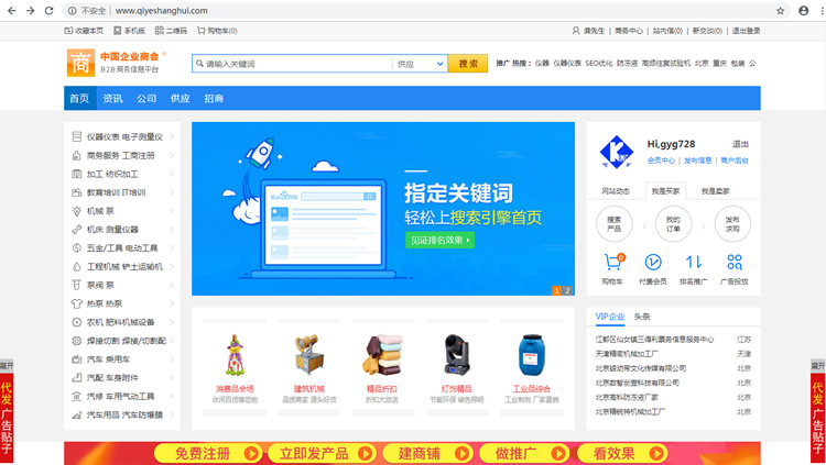匯總收集一些免費(fèi)的B2B網(wǎng)站,比如:阿里巴巴、企商匯(www.hbgoo.com)、世界工廠、環(huán)球資源等等,然后在這些B2B網(wǎng)站注冊會員賬號即可,有些B2B網(wǎng)站注冊需要提交公司營業(yè)執(zhí)照,那么我們可以找朋友公司營業(yè)執(zhí)照或網(wǎng)上找個營業(yè)執(zhí)照PS一下即可。