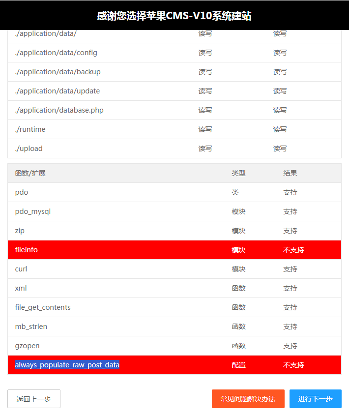 在安裝蘋果CMS v10版本或許有不少朋友都會出現always_populate_raw_post_data配置不支持,這是因為蘋果CMS官方說明always_populate_raw_post_data這個在PHP7.0后才默認開啟的,我們由于配置了低版本的,所以默認是關閉了,我們需要開啟它就好了。