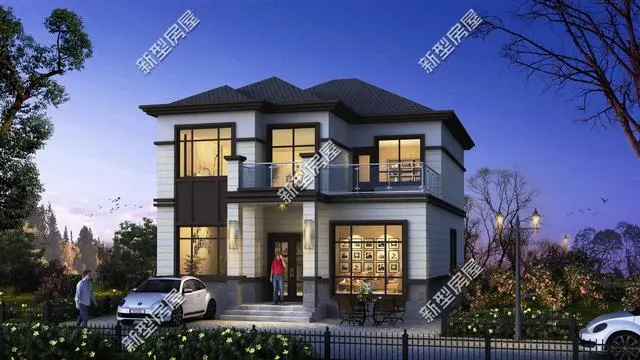 第1套:舒適陽臺+通透落地窗+大客廳,12×14米簡歐二層小宅,主體預算40萬