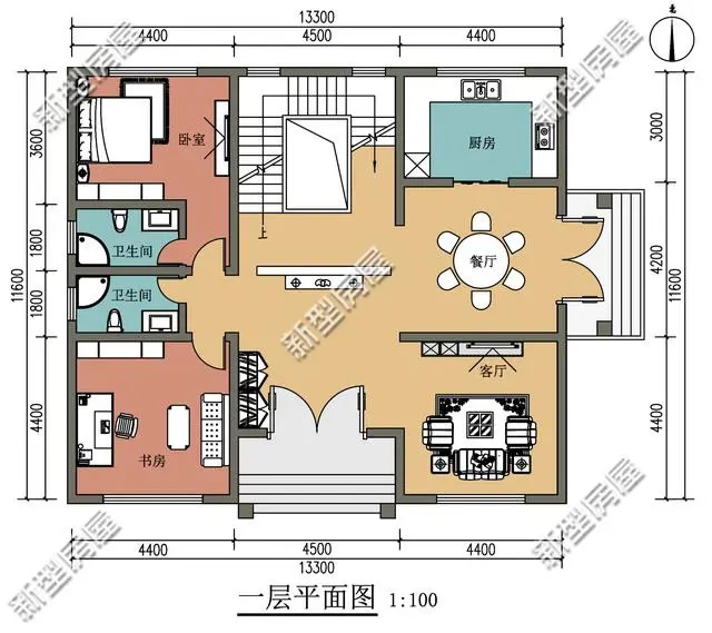 第5套:挑空客廳+雙入戶門,13×11米二層舒適美宅,主體預算40萬