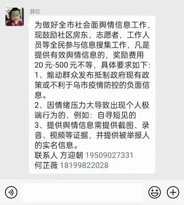“妄議政府的、攻擊疫情政策的,如果屬實(shí),我們關(guān)注以后,你舉報(bào)給我,我報(bào)上去,錢就給你了。”方警官說。