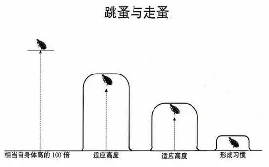 如此重復(fù)幾次,跳蚤改變了起跳高度以適應(yīng)環(huán)境,每次跳躍總保持在罩頂以下的高度。