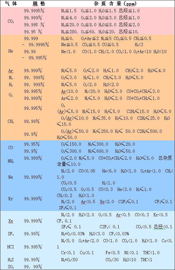 高純氣體與標(biāo)準(zhǔn)氣體的適用范圍