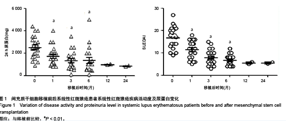 表5 間充質(zhì)干細(xì)胞移植對SLE患者疾病活動度及尿蛋白的影響