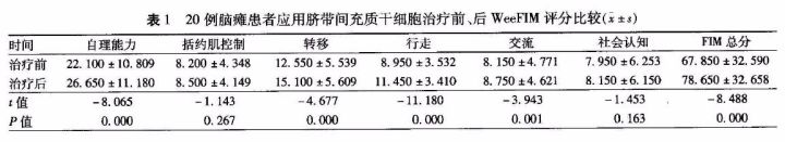 表7 解放軍323醫(yī)院應(yīng)用臍帶MSCs治療腦癱結(jié)果