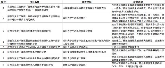 同時,實驗室還與中國軍事醫(yī)學(xué)科學(xué)院、四川大學(xué)華西醫(yī)院、四川省生殖健康研究中心、四川大學(xué)華西第二醫(yī)院、攀枝花中西醫(yī)結(jié)合醫(yī)院等開展臍帶間充質(zhì)干細(xì)胞臨床研究如下: