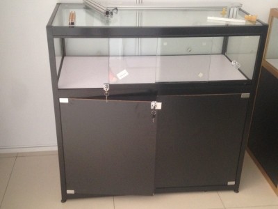 勝世鉑工廠訂制黑色八棱柱玻璃鋁展示柜珠寶玉器展高檔專用展柜廠