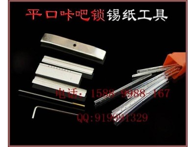 AB咔吧極速快開工具經過改進可適合各種口徑平口AB咔吧鎖,多加了一個螺絲眼,這樣就變成任意換頭,插入正槽這一頭就是正槽工具,插入另一頭就變味反槽工具,,可以用螺絲固定,由原來只有一個正槽和一個反槽改變為有兩個正槽兩個反槽工具,這樣經過改進,工具的耐用率和使用率有多了一倍. 經過改進把手,使工具受力更均勻,工具頭經過淬火熱處理,硬度更高,適合開啟各種口徑平口AB咔吧鎖,工具配10根成品錫紙條