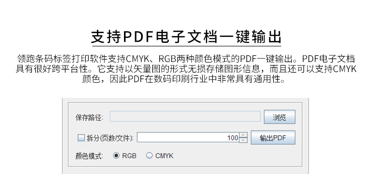 軟件支持一鍵輸出CMYK/RGB兩種顏色模式、以及具有專色功能的PDF文檔。PDF電子文檔具有良好的跨平臺(tái)性。它支持以矢量圖的形式無損存儲(chǔ)圖形信息,而且還可以支持CMYK顏色,因此PDF在數(shù)碼印刷行業(yè)中非常具有通用性。
