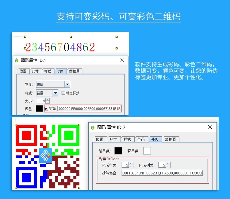 4、支持可變彩碼、彩色二維碼