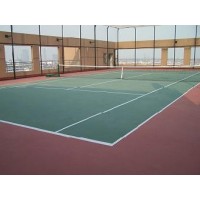 (10)劃線:按標準尺寸量度定位,用帆布線標出線條位置,然后而用美紋紙沿帆布線貼在球場上,用劃線專用劃線漆均勻用毛刷刷于兩美紋紙之間,待涂料表面干后把美紋紙撕掉即可。