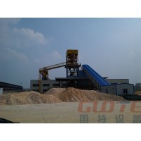 生產過程:鏟車將原礦送入料倉,料倉尾部放置一臺輸送機,從尾部出來的原礦通過輸送機經振動給料機均勻給入正下方的顎式破碎機(粗破),進行初步破碎。然后,產成的粗料由輸送機輸送至細碎機進一步破碎,細碎后的石料進振動篩,篩分出兩種大小不同的石子、石塊,超過規(guī)格的大石塊返回細碎機,再一次破碎。篩下物料進入棒磨機,從棒磨機出來的物料經圓筒篩分級,篩上返回棒磨機。篩下物料進入受阻沉降機和水力分級機進行分級。分級后的成品經高場強板式磁選機和立環(huán)高梯度強磁選機進行除鐵后。除鐵后的精砂經脫泥斗脫水后打入精砂庫。