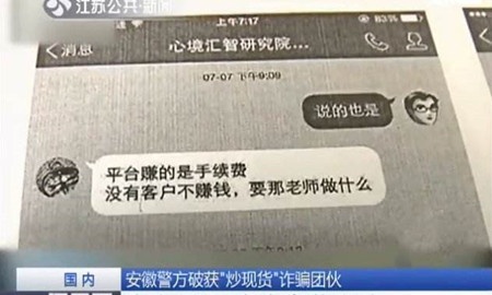11月份的一天,我突然收到一個陌生人申請?zhí)砑雍糜训男畔ⅲ瑳]多想便通過了驗(yàn)-證。剛開始跟我閑聊,后面知道我平時會炒股票,說他也做股票而且有個群,里面老師特別的厲害,會在群里推薦好股,還會給大家提供一個分享和交流的平臺。接著我就被拉進(jìn)群里,后來按著老師推薦的股票買了幾支,確實(shí)有收益,很快的也很相信老師。后來老師說股票市場行情不太好,并且宣稱股市黑幕或莊.家太多,鼓動大家把股市里的錢轉(zhuǎn)入期貨市場。