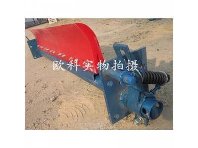 清掃器適用于清掃卸載滾筒處皮帶上粘附的物料,可分雙向刀頭和單向刀頭,屬于頭道清掃器。可自動調節清掃器刮板與輸送機膠帶之間的接觸壓力,保證了刮板與運行的膠帶受力在一定合適的范圍之內,使清料既干凈,又不損壞膠帶。