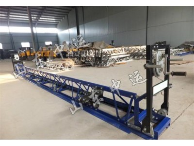 混凝土整平機主軸軸承采用超強抗震外球面向心軸承,確保了機器的整體性能。單節之間采用萬向節連接,可完成平面、拱形面、凹型面的工程。整體框架采用全鋼制結構、堅固抗震,整平底板選用錳鋼板,經表面處理耐磨、耐腐蝕。附有離合式絞輪,省力、方便,該機可配汽油機和電機做動力滿足不同工程的需要,該機可自由拼裝4到16米的路面一臺機器就可完成。