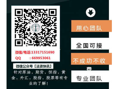 滿足以上3個條件我們有把握追回、時間1-15個工作日,個別平臺會需一個月左右。合作之前會簽署明確的協議書,法資快訊承諾客戶,不成功絕不收取任何費用,追.回.款到你卡上了再給服務費。【法律咨詢微信:【13317151690】QQ:【669953061】,更多請關注微信公眾號【法資快訊】專業挽回非正常虧損資金,專業法律咨詢,無任何前期費用