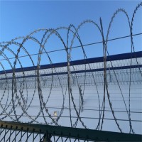 4.監(jiān)獄鋼網(wǎng)墻蛇腹型刀刺網(wǎng):BTO-22,70-A,抗拉強(qiáng)度大于1450N/mm,刀型整齊,刀片鋒利,排列均勻、致密,連接牢固,防腐能力強(qiáng)、可達(dá)到防翻躍、防拆卸最高安全防護(hù)等級。