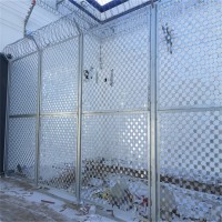 監(jiān)獄防護(hù)網(wǎng)又稱監(jiān)獄護(hù)欄網(wǎng)或監(jiān)獄隔離柵,主要是采用高強(qiáng)度的刀片刺網(wǎng)與普通防護(hù)網(wǎng)的結(jié)合,由V型支架立拄,加強(qiáng)型焊接片網(wǎng),安全防盜連接件和刀片刺網(wǎng)組成.刀片刺網(wǎng)是一種新型防護(hù)網(wǎng),由銳利尖角鍍鋅鋼板或不銹鋼薄板做刀片,鋼絲做芯線組合而成的防護(hù)器材.