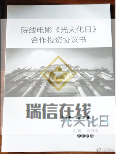 浙江暴雨影業有限公司正規嗎?投資《光天化日》被騙怎么辦?詳情咨詢瑞信維權(vx:1052140986)!趙云峰帶單炒投資電影,眾籌影視為什么一直虧損?虛假影視項目頻繁虧損是為什么?虧損如何追回?對自己虧損有疑問的都可以來咨詢瑞信維權(vx:1052140986),維權周期兩周左右,前期不收取任何費用,過程公開透明,一定要及時拿起武器維護自身權益!