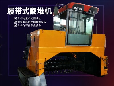 履帶式翻堆機屬大型翻堆機的一種,全液壓操作系統,拉桿式方向盤操作,履帶式行走,結實耐用,動力強勁,技術先進,產量大、翻拋能力強,翻拋滾筒液壓升降調節,自動化程度高,操作簡單易掌握。是有機物料耗氧發酵轉化成有機肥的專業翻拋設備。