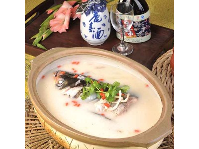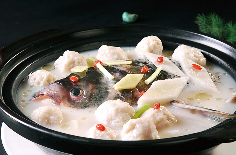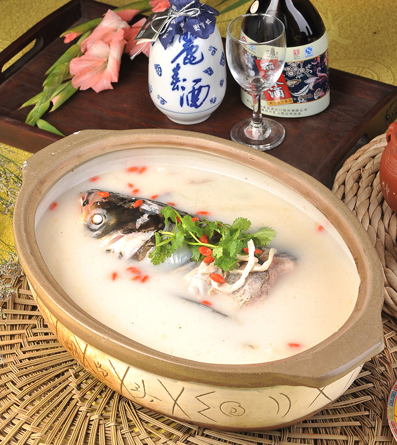 選用特別訂制的江蘇宜興魚頭紫砂砂鍋,將魚頭下鍋煎黃后撈出,放入砂鍋,注入天目湖水,輔以蔥結(jié)、生姜、料酒、香醋、香菜、胡椒等,撇除浮油,在火上煨煮數(shù)小時,一道白里透紅,細嫩無比,鮮美絕倫的天目湖砂鍋魚頭就可以上桌了。