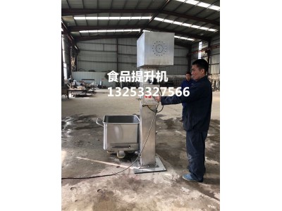 我廠生產的食品機械提升機分為移動式提升機和固定式提升機兩種機型,另有爬坡輸送提升機,T200型提升機是專為200L標準料斗車配套的提升設備,其功能是將物料提升到一定高度后,傾倒至需加料設備的料倉中,以完成加料工作。該機采用全不銹鋼材料制造,鏈條傳動,便于清洗,美觀耐用,操作簡單安全。具體提升高度可根據客戶實際需求來訂制加工,料斗車規格、提升高度、提升重量、使用材料等可自定,完全符合多行業客戶情況。技術參數:提升重量200(kg) 提升速度1.8m 升降速度3m/min 電機功率2.2(kw) 外形尺寸920×1100×2800 可以按用戶要求訂做。