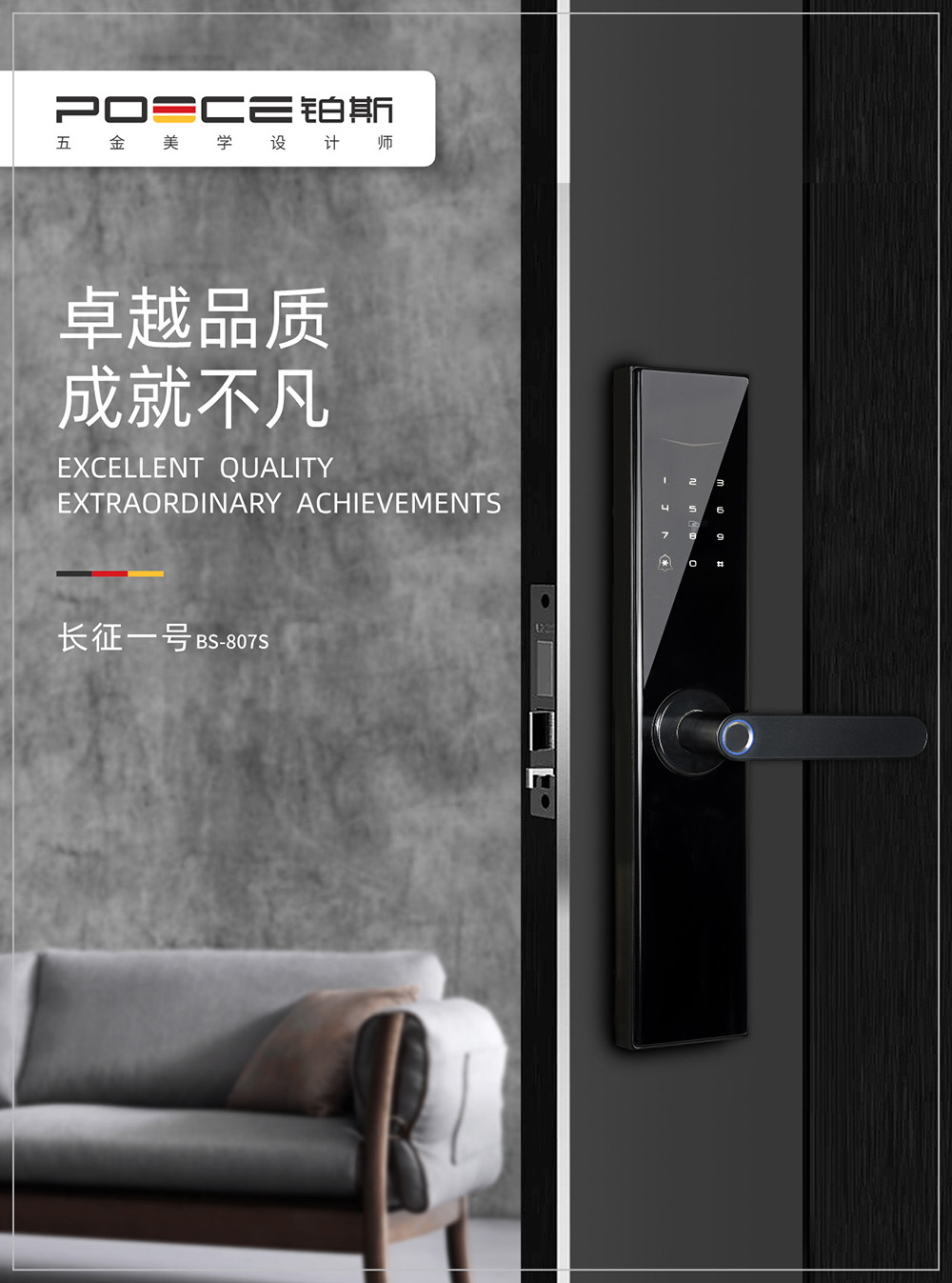 鉑斯長征一號BS-807S智能鎖是我公司新一代產品,適用于鐵門,鋼門,木門