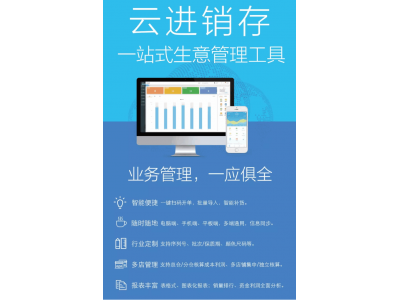 云進銷存:基于SaaS模式,集購、銷、存和應(yīng)收應(yīng)付款管理為一體,幫助企業(yè)節(jié)省成本,提高效率,隨時隨地輕松打理生意,免安裝、免維護、免升級、在線即可試用,手機端開單、查庫存、查報表,經(jīng)營狀況隨時掌握。