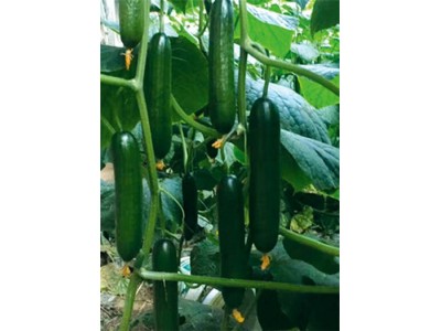 綠冠 108品種特性: l 、一代黃瓜雜交品種,長勢強,葉片中等,莖粗壯,葉片深綠,主蔓結瓜為主,瓜碼密,連續結瓜能力強,畸形瓜率低。 2 、瓜條棒狀,短把,密刺,圓頭,順直,綠瓤,綠油亮型,瓜條長度 36 厘米左右,畝產 4 萬斤以上。 3 、抗早衰,抗枯萎病、霜霉病和粉病,耐低溫,耐弱光,高抗連陰天,適合越夏,秋延,越冬,早春定植。