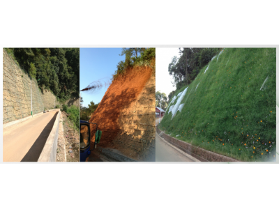 自河南景繡繪遠生態科技有限公司創建以來,在“邊坡綠化裝備與技術研究中心”的強力推動下,不斷推出新的施工技術、研發出新的施工用原材料。景繡生態秉承恒睿團隊認真、細致、一步一檢驗的生產理念依據張成梁研究員“師法自然的理念效仿蕨類苔癬防雨水沖刷的自然現象。先后創立了“高陡坡創面纖維骨架修復技術”、景繡噴播纖維有機菌肥、防雨水沖刷的AB型高分子材料、景繡仿苔蘚表層纖維,運用多項專利技術使得我們施工后的坡面形成束狀多孔結構提高防雨水沖刷能力,同時土壤形成蜂窩狀結構,增加坡面保水性,使坡面植被能順利吸自然降并把雨水有效儲存,從而將裸露坡面恢復成原始自然生態叢林,一舉打破國內邊坡綠化行業“一年綠,兩年荒,三年死光光”的整體現狀。