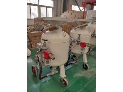 整機(jī)工作原理:壓縮空氣經(jīng)過竹節(jié)接頭進(jìn)入噴砂機(jī)壓力罐內(nèi),錐形封閉閥頂上,壓力罐密封。壓力管內(nèi)的磨料流入砂閥,壓縮空氣在砂閥處與磨料混合,經(jīng)噴砂管從高速噴嘴噴出,對工件進(jìn)行處理。