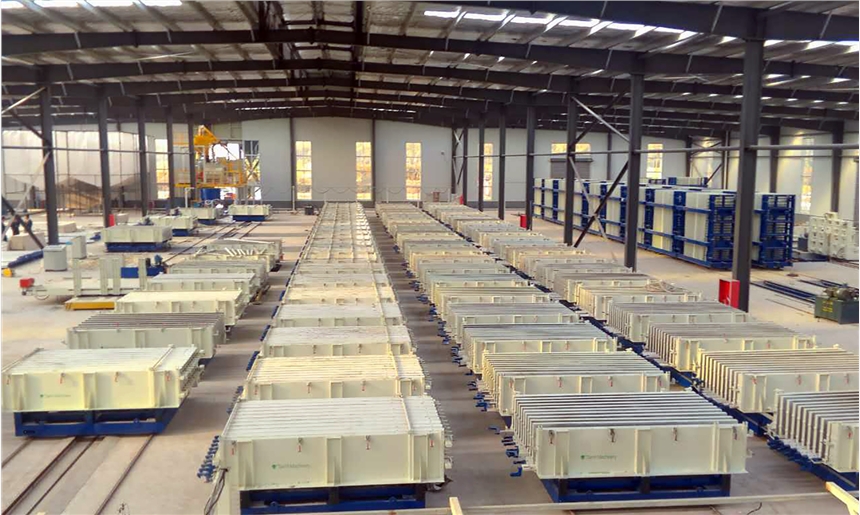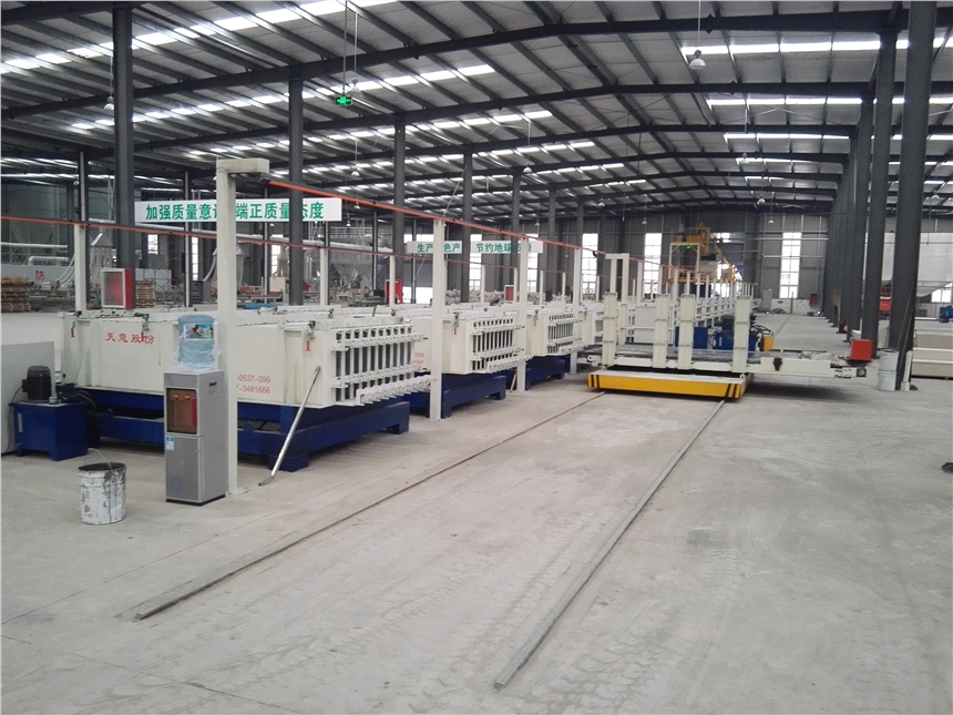 山東天意機械自主研發的TYF臥式墻板生產線是生產隔墻板的主要設備,它主要包括數控配電室,儲料罐,發泡攪拌機,電子計量儲料倉,螺旋輸送機,EPS熟化料倉,EPS預發機,擺渡車等。自主研發的大型攪拌設備配有自動配料系統,結合材料的性能使料漿攪拌更均勻,能夠很好的融合在一起。料漿泵送系統更好的將攪拌好的料漿輸送到設備里面,澆注模式更簡單方便。發泡系統采用變頻發泡技術,提高了發泡速度,節省了原材料,墻板成型機自動行走,產品成型速度高。該生產線自動化程序高,操作簡單,生產效率高年產硅酸鈣板聚苯顆粒復合輕質墻板30萬平方米。
