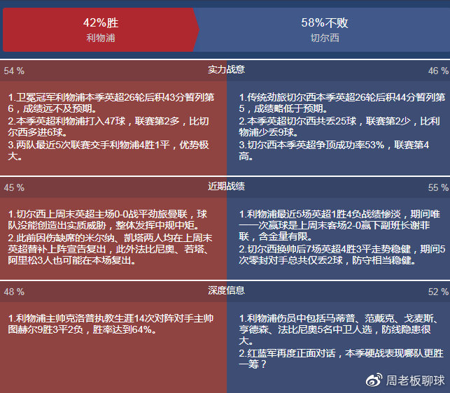 老周聊英超焦點戰:利物浦VS切爾西,主場作戰能否全取三分?