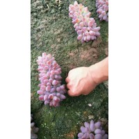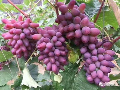 雌性花,無核,抗寒抗病能力強,早產性好。經吉林大藥膨大處理后果穗緊密,果實大小整齊,果實顏色紫紅色,單果重8克。果穗圓筒狀,穗重500-1000克;果皮較韌,耐儲運,果實粉紅色??扇苄怨绦挝锖?2% ,有濃厚的茉莉香味,品質好。耐陰雨,成枝好,且產量高、含糖量高,品質好,豐產穩產。適宜大部分地區栽培,在2008年逐漸推廣開。