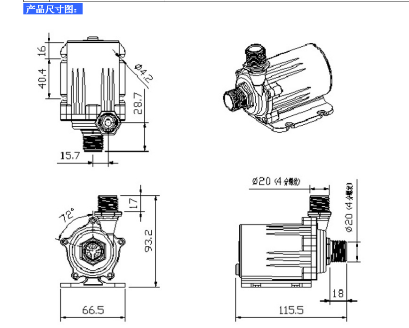 無(wú)刷直流水泵具有體積小、重量輕、出力大,無(wú)極調(diào)速、調(diào)速范圍廣,軟起軟停、制動(dòng)性能好,效率高綜合節(jié)電效果好,其可靠性高、穩(wěn)定性好、適應(yīng)性強(qiáng),耐顛簸震動(dòng)、噪音低、振動(dòng)小、運(yùn)轉(zhuǎn)平滑、壽命長(zhǎng),不產(chǎn)生火花、抗干擾、安全性能好等特點(diǎn)。