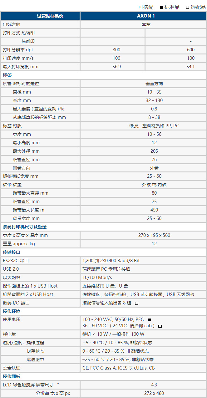 AXON 1 的用途為在自黏性標簽上打印二維或一維條碼并在試管上進行貼標作業。