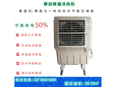 移動式冷風機主要適用于崗位降溫、開放式或半開放式環境場所。移動式冷風機無需安裝,直接加水插電就可以使用,移動式冷風機重要的就是方便移動,特別便利。移動式冷風機充分解決了室外露天場所及固定式冷風機不能移動的降溫需求。