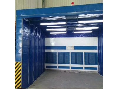 伸縮移動式噴漆房和無泵水幕噴漆房結合使用,是解決重型工件噴漆時移動難的問題,而活動噴漆前室就克服這個問題。工作時將活動前室收縮,用天車將重型工件吊運到噴漆場地,再將活動前室展開,罩住工件,即可工作。噴漆后再將前室收縮,用天車將工件吊離,不影響天車的工作,大大簡化了不斷用車間天車吊運大型笨重工件來回周轉的工藝流程;而無需專門的運輸工具;展開長度可以在任意位置,也可根據客戶的實際生產需要定做各種型號的非標尺寸。