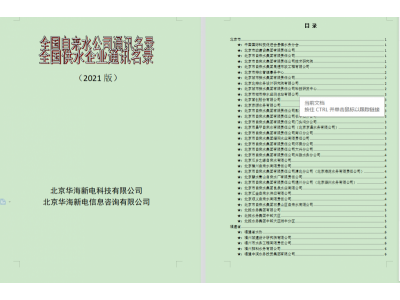 《全國自來水廠名錄》收錄了2020年前投產的自來水廠3000余家。信息內容包含:自來水廠名稱、法人、各科室聯系人、郵編、地址、處理工藝、投產時間、。